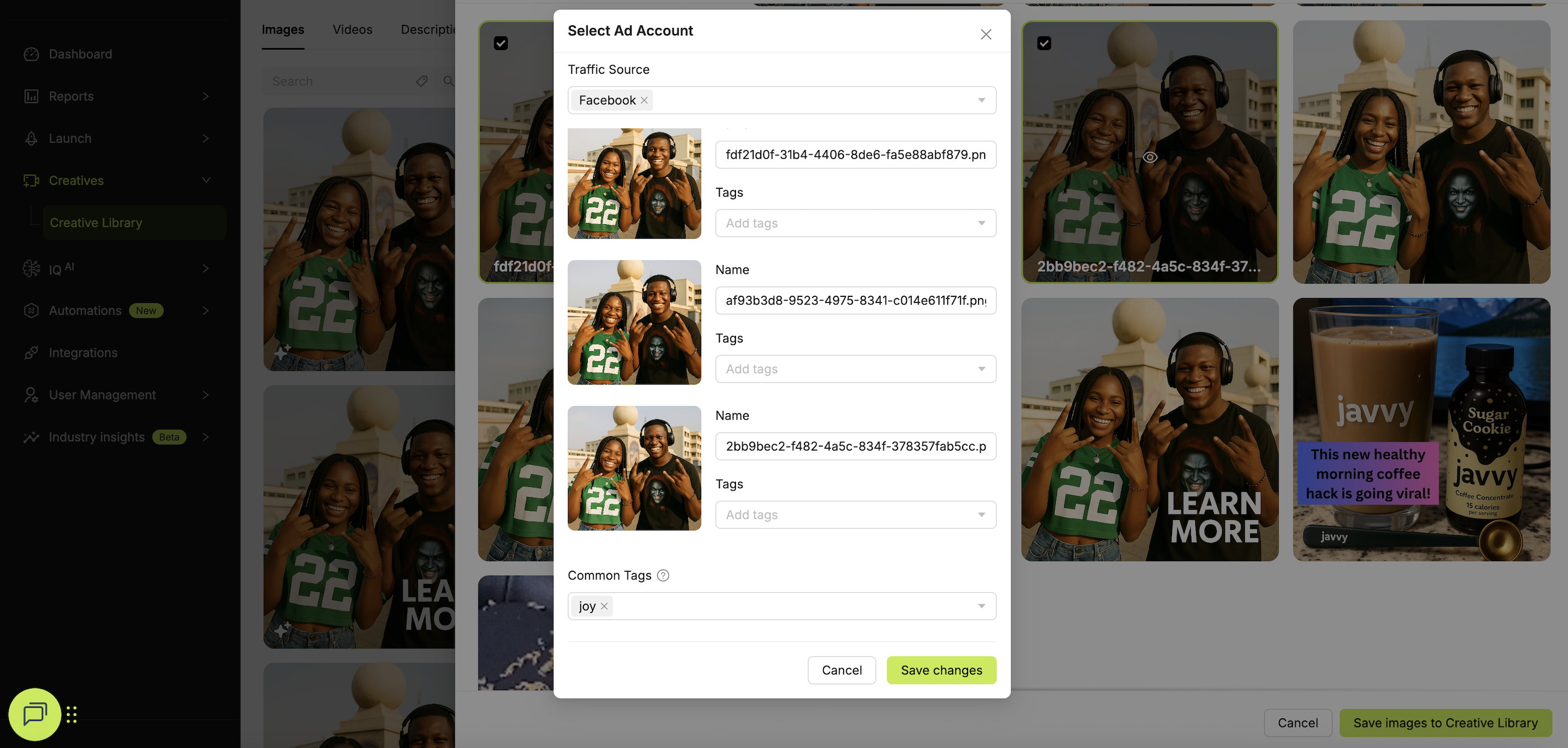 - (Optional) Add individual tags or apply Common Tags to all selected creatives.