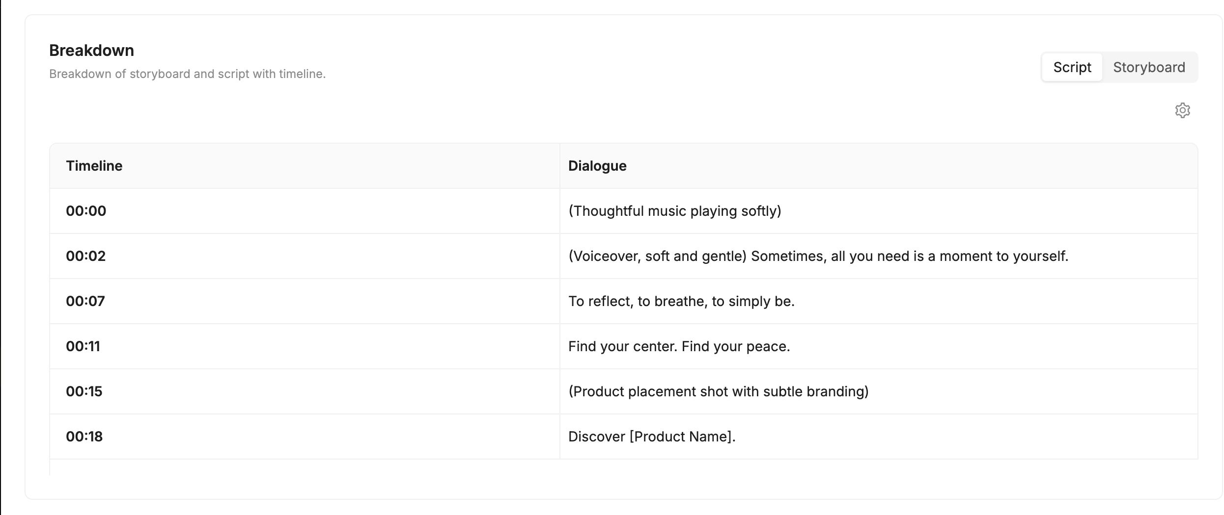 - Breakdown (Timeline Prompts) A timestamped timeline of the audio prompts and messages delivered through the ad.